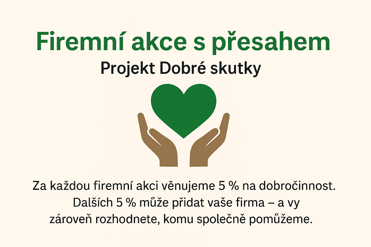 5 % z ceny každé firemní akce věnuje Zelený grunt na dobročinnost a dalších 5 % může přidat i vaše firma.