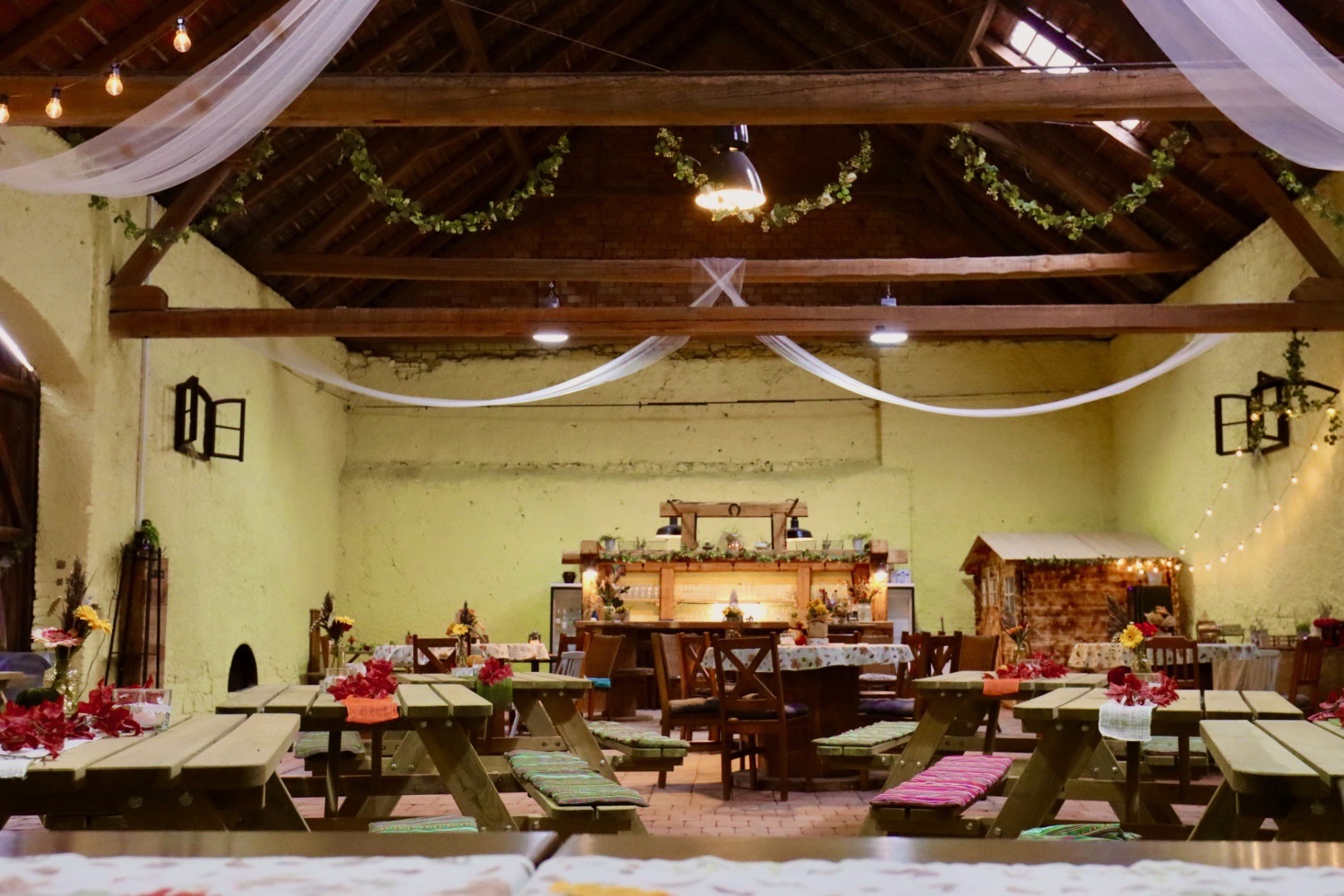 Stodola 280 m² – až 120 osob podle uspořádání. Stylový prostor s barem, obsluhou a technickým zázemím pro celovečerní akce.